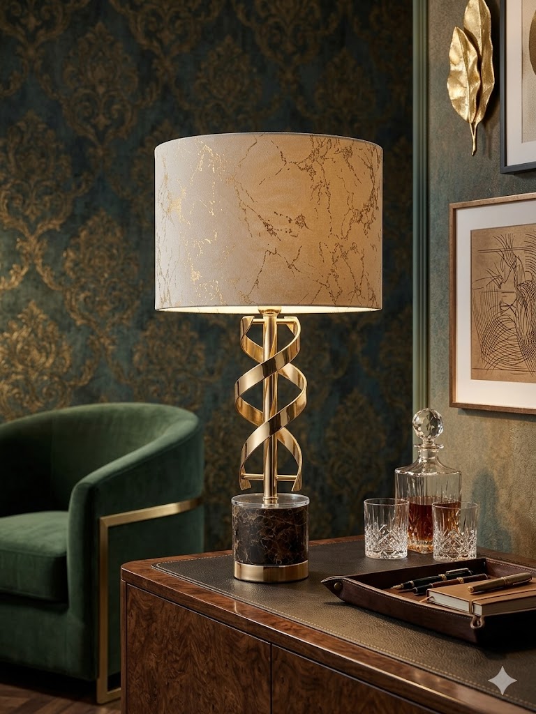 Candeeiro de Mesa com Base de Mármore e Design em Espiral – Abajur Bege