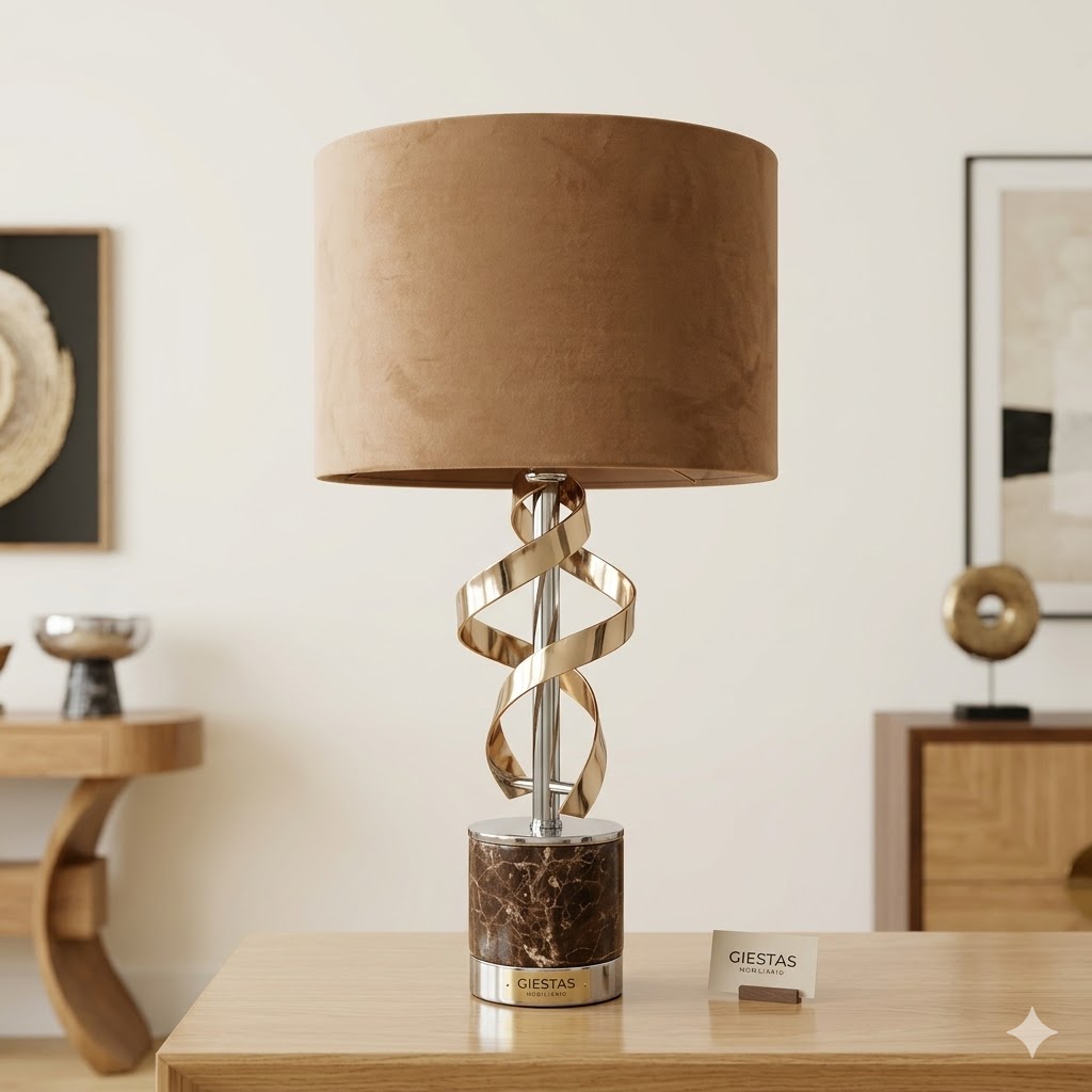 Candeeiro de Mesa com Base de Mármore e Design em Espiral – Abajur Castanho