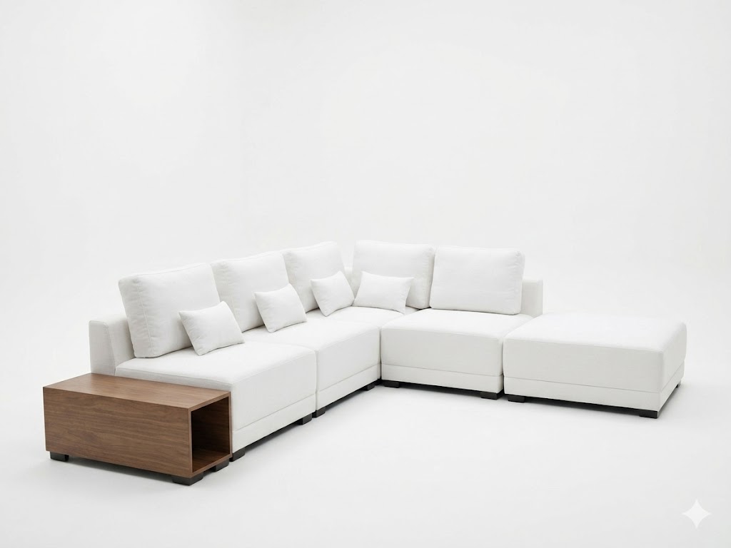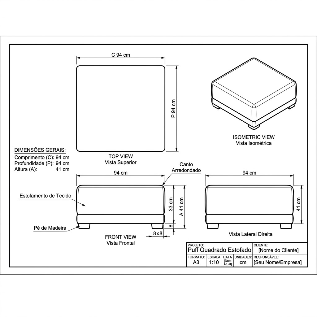 O seu design versátil permite que seja utilizado como um assento extra, um pousa-pés para relaxar ou até mesmo como uma mesa de centro improvisada, com um tabuleiro por cima. O estofamento em tecido texturizado é não só visualmente atraente, mas também durável e fácil de limpar.
